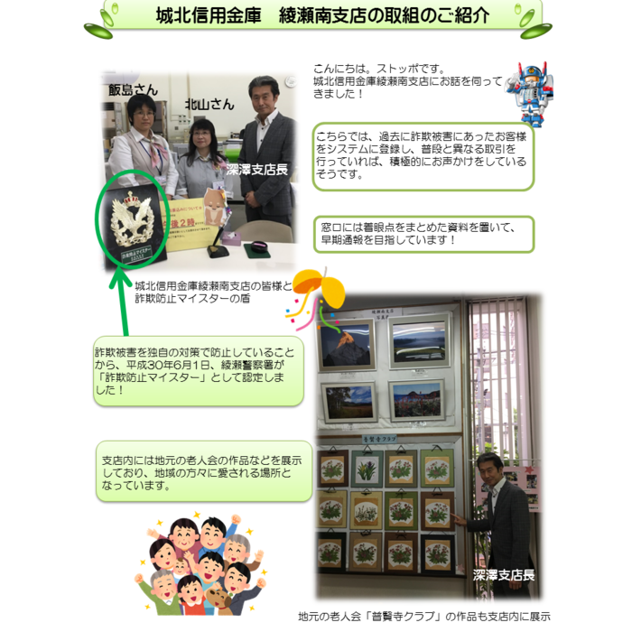 特殊詐欺根絶に向けた取組のご紹介~城北信用金庫綾瀬南支店様~ |